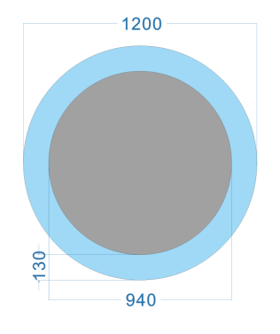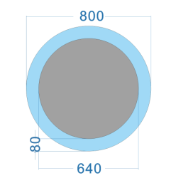 As shown Size: DIA 600, Frame width 100MM, Mirror Dia 400MM