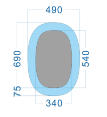 As shown Size: 690*490, Frame Width 75MM, Mirror Size 540*340MM